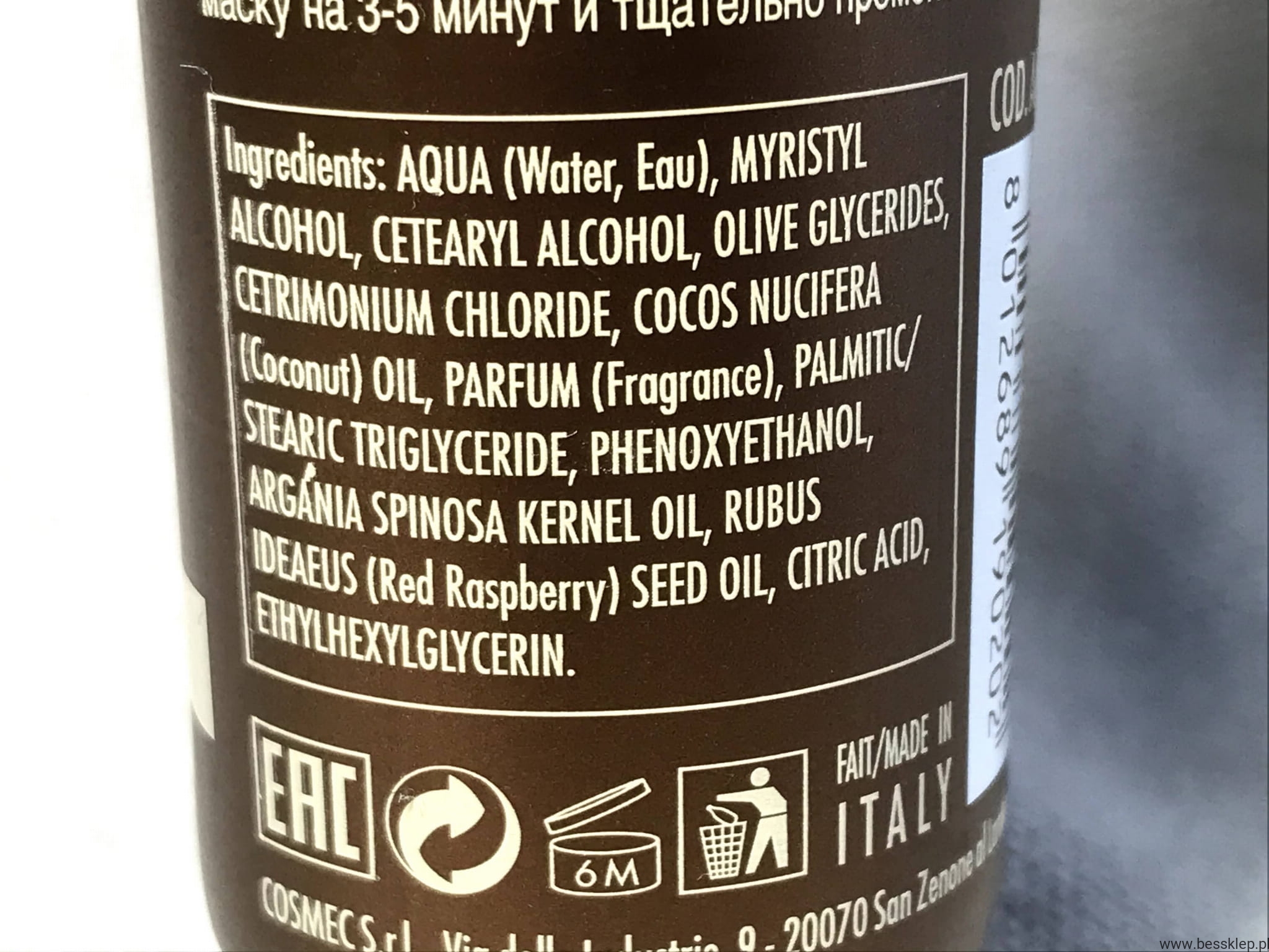 Receptura maski oparta jest na naturalnych składnikach pochodzenia roślinnego. Olej kokosowy, oliwa z oliwek, olej arganowy oraz olej z nasion malin zapobiegają wysuszaniu się włosów i zatrzymują wilgoć wewnątrz nich. Ochrona włosów aż po same końce – co oznacza mniej rozdwajających się, połamanych końcówek! Specjalna formuła bez silikonów dba zarówno o włosy, jak i o środowisko.