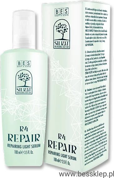 Profesjonalna linia kosmetyków BES Silkat REPAIR (R) w całości przeznaczona jest do suchych, bardzo zniszczonych włosów. Doskonale sprawdzi się u wszystkich, którym zależy na głębokim odbudowaniu struktury włosów od nasady aż po same końce. Kosmetyki z linii REPAIR odbudowują strukturę włosa od wewnątrz, chroniąc i nawilżając go jednocześnie od zewnątrz. Olejek bardzo szybko się wchłania, nie obciążając i nie powodując nadmiernego przetłuszczania. Unikać stosowania na skórę głowy. PH = 6.