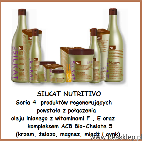Profesjonalna linia kosmetyków BES Silkat NUTRIVO (N) w całości przeznaczona jest do suchych, matowych włosów. Doskonale sprawdzi się u wszystkich, którzy cierpią z powodu zniszczeń spowodowanych chemicznym farbowaniem, rozjaśnianiem lub nadmiernym używaniem prostownicy czy lokówki. Kosmetyki z linii NUTRIVO odbudowują strukturę włosa od wewnątrz, chroniąc go jednocześnie także od zewnątrz. Jeśli szukasz produktów do silnego odżywienia włosów jak w salonie kosmetycznym, połącz ampułki z maską Silkat N3.