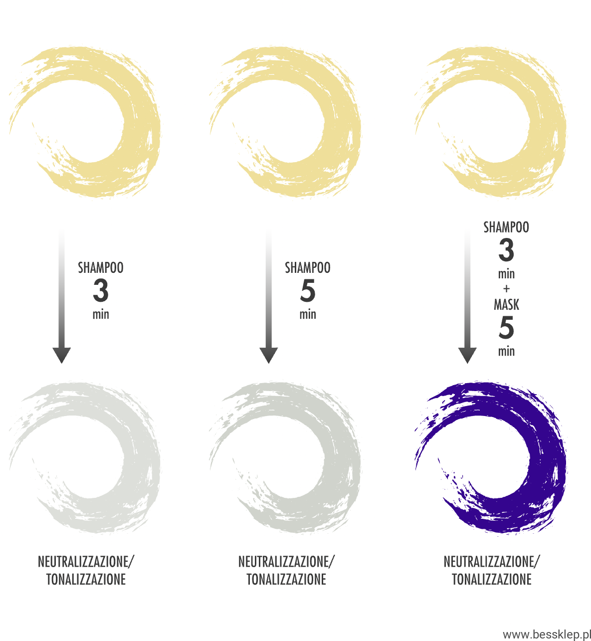 - od 2 do 3 minut neutralizuje żółty kolor pozostawiając kolor perłowo-popielaty